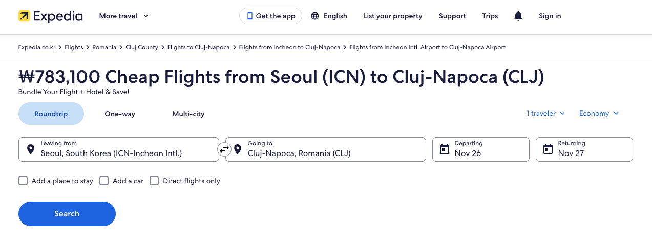 - 일단 분위기 파악할려고 익스피디아로 그냥 조회해봤음.