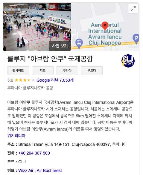 - 당연히 루마니아 클루지나포카 시에 소재하는 공항입니다.