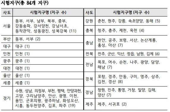 1. 수학능력시험,  수능 전국 시험지구 84개, 서울 수능시험장은 11개 시험지구